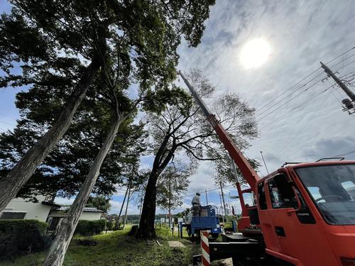 道路や電線に倒れては困ると言うことで急遽依頼を受けた案件です。最近天気に恵まれず、やっと作業に入れました!高所作業者17Mとクレーンで1日がかりの伐採作業です。夕方までに無事終了することができました...