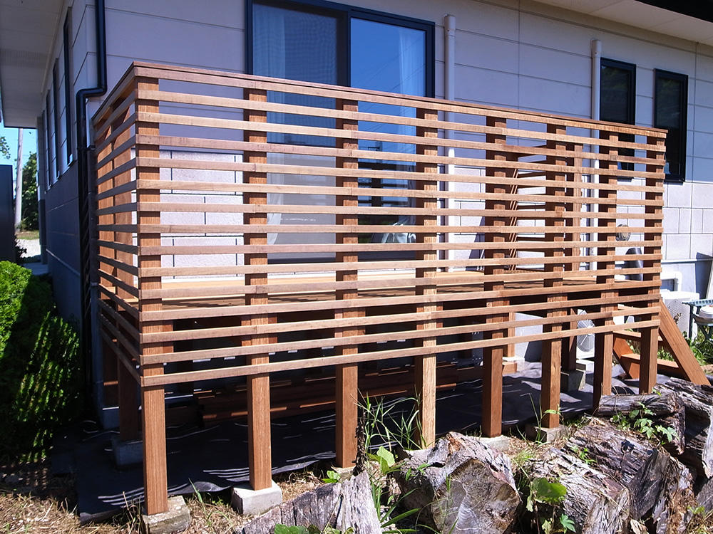 当社では主にウッドデッキの根太や、ウッドフェンスの目隠し用のルーバーとして使用しています。