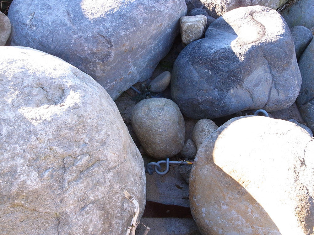 9個の玉石を金具で相互に連結し、4トンのブロック製作、設置しました。
