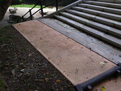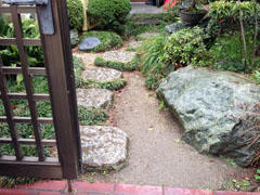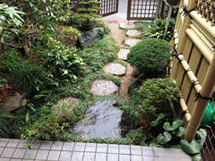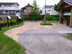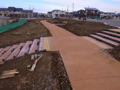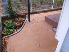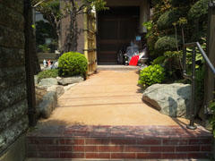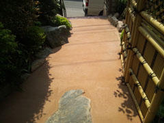 飛び石を取り除き、代わりにタフコートを施工。段差が解消され、車椅子でも楽に行き来できるようになりました。