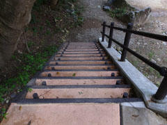 この住宅では門から玄関まで並べられた飛び石と地面との間に段差があり、つまずいて転びやすく危険な状態でした。