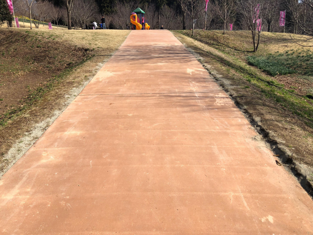 当社では、砕砂が入らないモルタルが製造できるプラントと提携しています。年数がたち経年変化で表面が洗われて、味わいがある舗装になりました。しかし性能は低下することなく、長寿命化につながる舗装です。