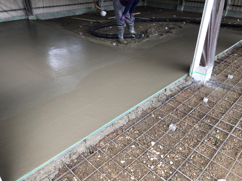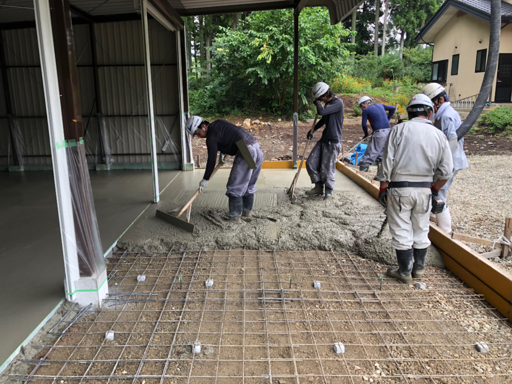 ガレージ内の土間コンクリート舗装です。気温が高い時期は、締りが早いので打設に気を使います。柔らかすぎても割れやすいですし、時間が空くと継ぎ目で割れやすいです。何よりも均し間に合わなくなりますので、暑い時期の打設にはよりマンパワーが必要です。駐車場やガレージのコンクリート打設は、ぜひ当社にご用命を!詳しくはお問い合わせください。 生コン車入れ替えや待ち時間が長くなると継ぎ目でひび割れが入りやすいです。その際は、振動をかけて新しい生コンと古い生コンをなじませます。 カテゴリー: 最新情報 0件のコメント コメントを残す コメントをキャンセルメールアドレスが公開されることはありません。 ※ が付いている欄は必須項目です 名前 * メール * サイト ご意見、ご感想をお願いします。 次回のコメントで使用するためブラウザーに自分の名前、メールアドレス、サイトを保存する。 上に表示された文字を入力してください。