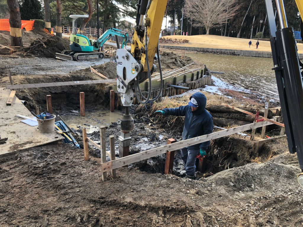 木道橋の基礎に井桁基礎工法が採用になり、先日施工いたしました!