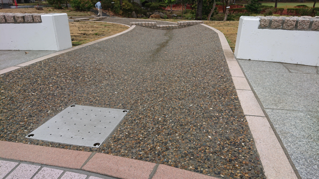 金華砂利3分を使用した洗い出し水路の施工事例です。