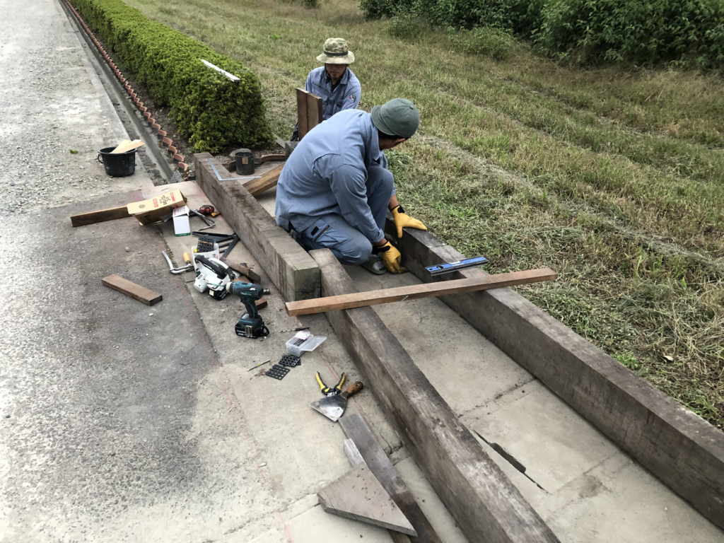 植樹マスは、3段に区分けしてモルタルを塗る予定です。