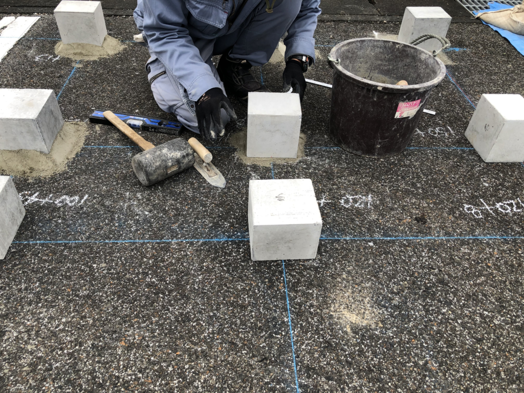 基礎ブロックの上部に土台を敷いて支柱を建てていき、壁パネルと屋根を取り付ければ完成です。