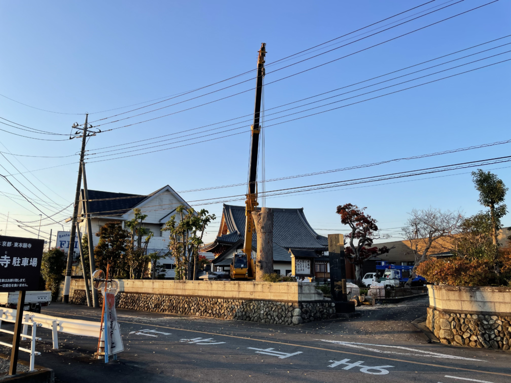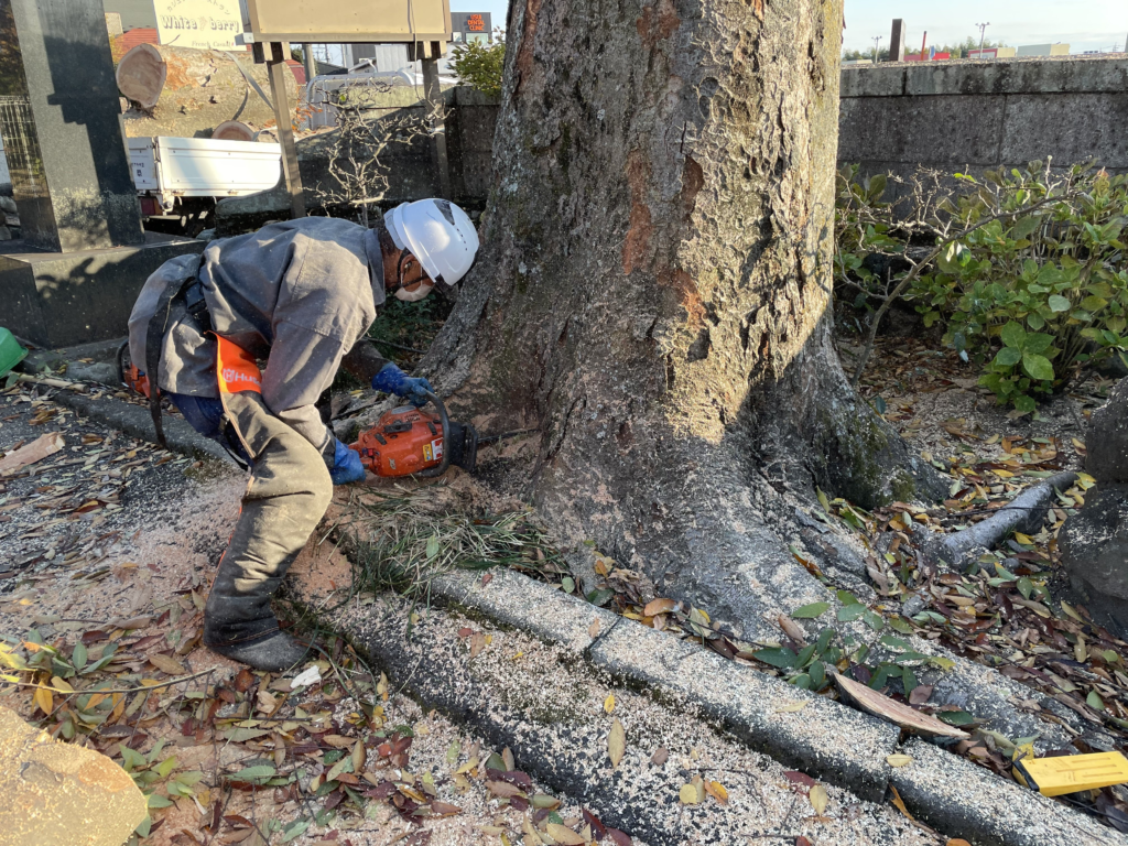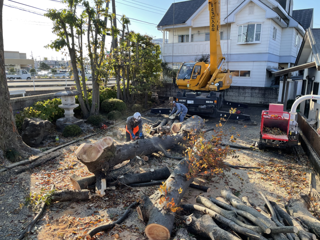 当社にあるチェーンソーで一番大きな機械を使用しなんとか切り倒しました。