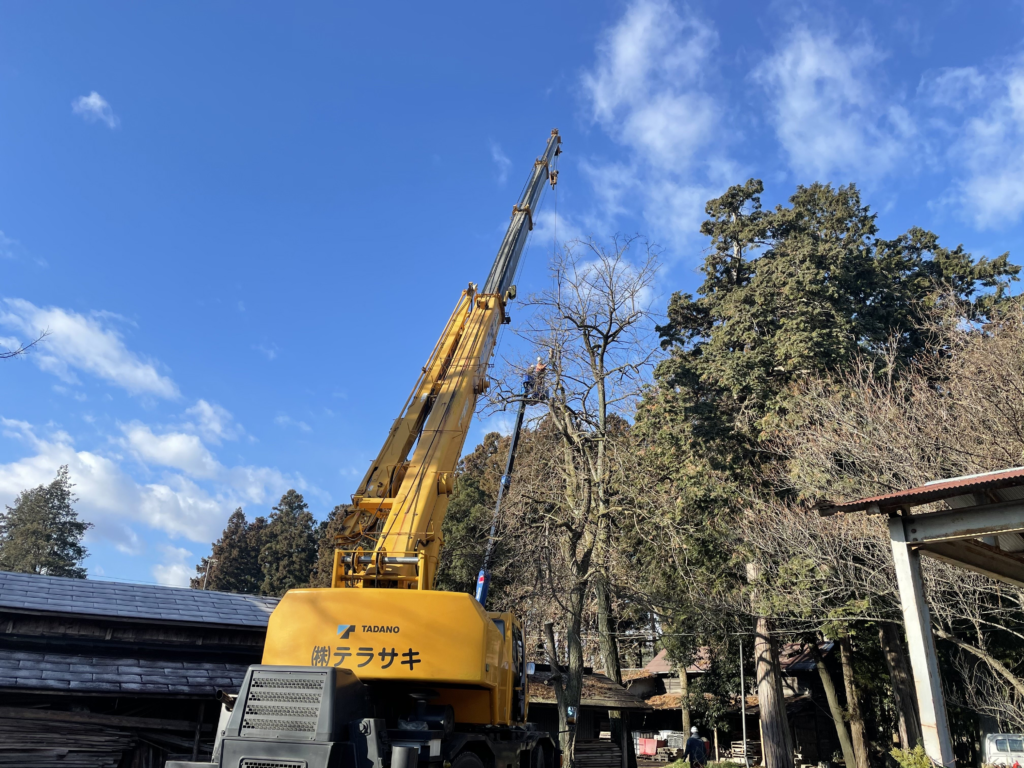 ニセアカシアの伐採です。風が穏やかで天候に恵まれた日でした。 クレーンを使用した伐採のご依頼がありましたらお気軽にご相談ください。移動式クレーン、高所作業車、チェーンソーの作業は、有資格者が行っています。 カテゴリー: 最新情報造園・外構・雑草防止