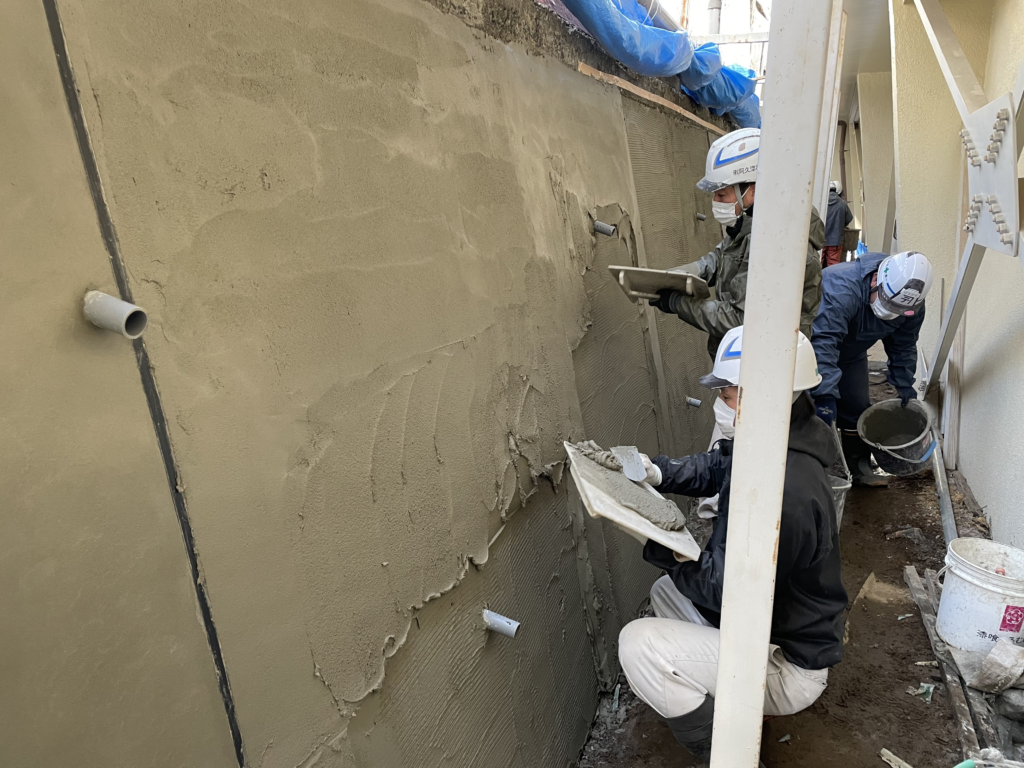 このあとワイヤーメッシュを設置し、いよいよモルタルを塗りつけていきます。