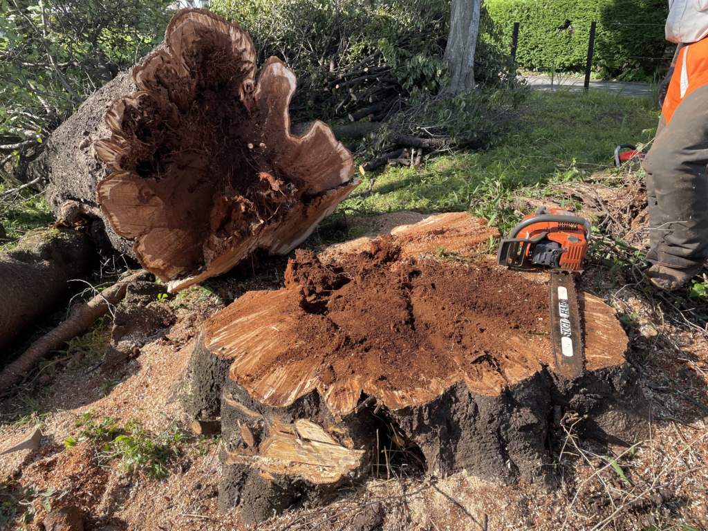 チェーンソーのバーが足りるか心配でしたが、中が柔らかかったおかげでなんとか倒せました。