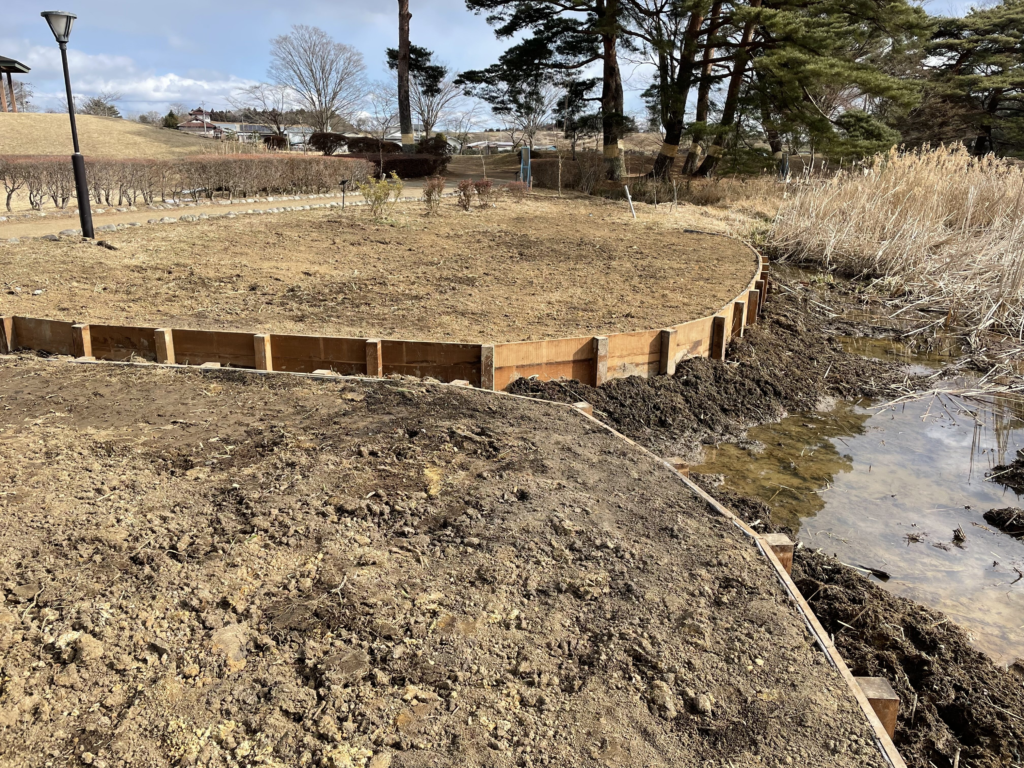 以前から当社で施工に携わっていた大池公園の土留め柵が完成しました!
