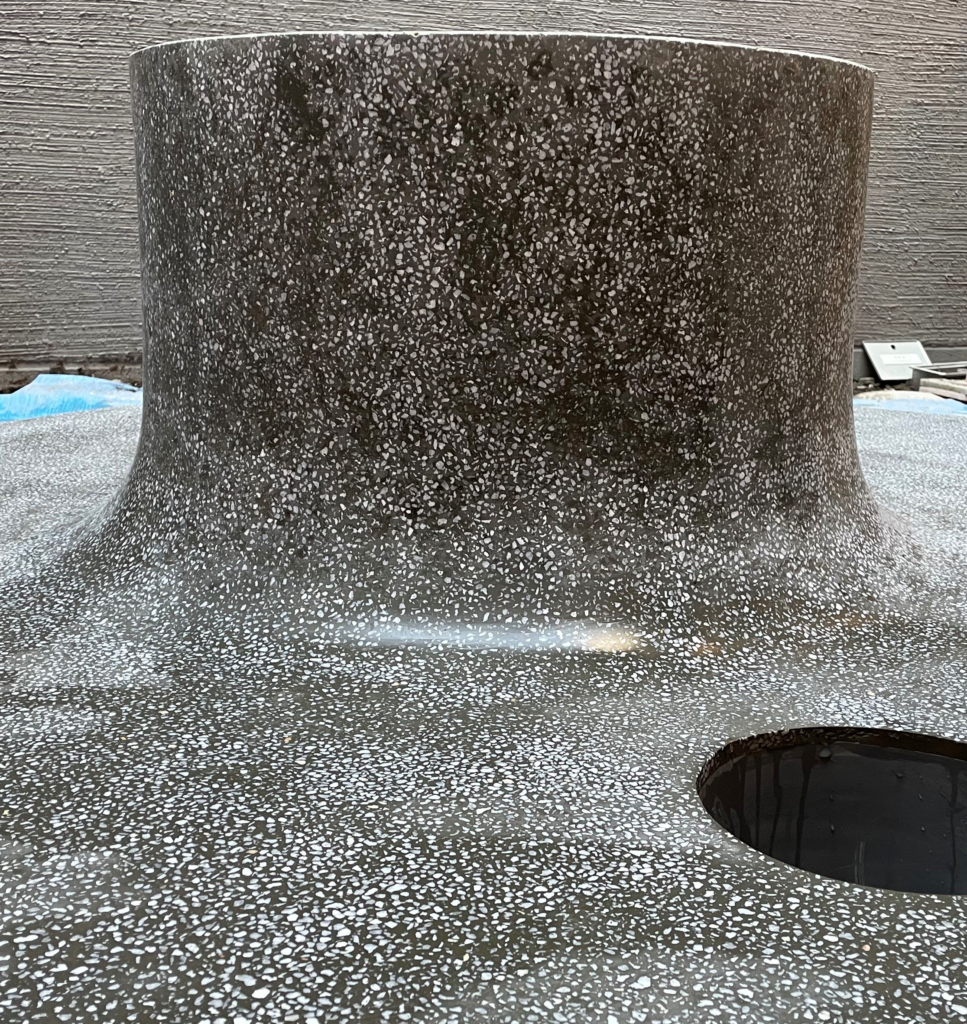 東京都内某所のマンション中庭にて、人造石研ぎ出しの仕上げを施工させていただきました。設計の方から相談があり、工期が厳しい中でしたが真崎親方と壁の匠のコラボレーションにより完成にこぎ着けました。いつもありがとうございます。 曲面の表現がうまくできたので設計の方にも納得していただけたと思います。レトロな雰囲気とシンプルな曲面を表現する難しさが相まって、唯一無二の構造物になりました。UAoさんのデザイン、さすがです!既製品には無い楽しさがありますよね。 カテゴリー: 建築よろず相談最新情報
