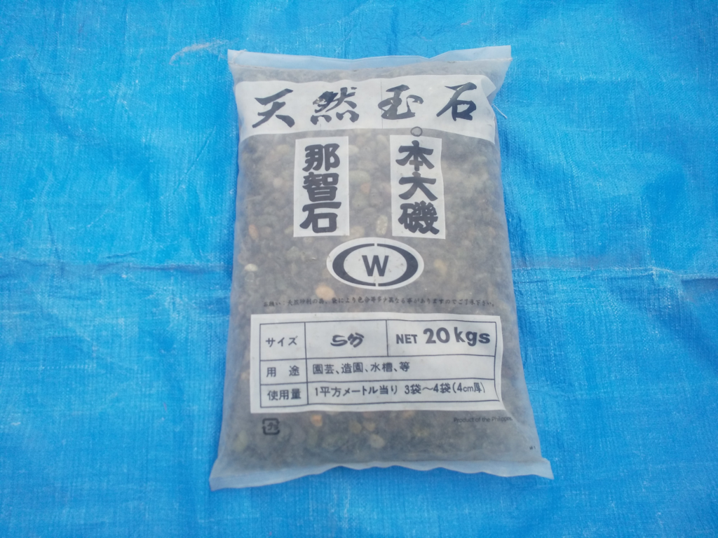 敷砂利に使用した場合、5cmの厚みで敷均して4~5平米分です。