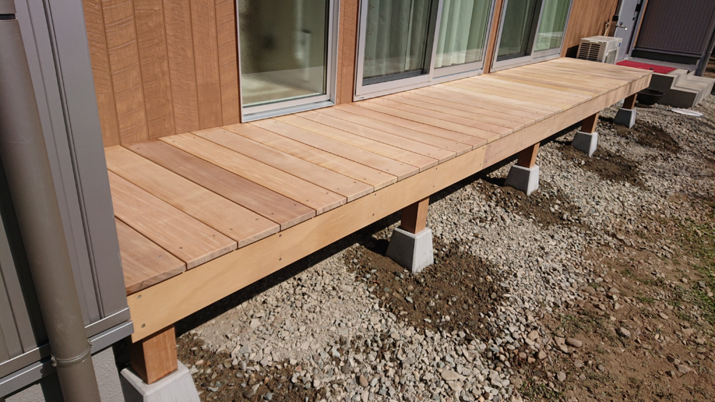 普段使用しているウッドデッキ材を使っておりますので、なかなか贅沢な濡れ縁になりました。