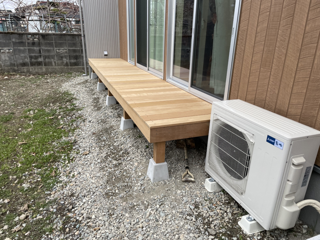 掃き出し窓の外側に濡れ縁を設置させていただいた事例です。