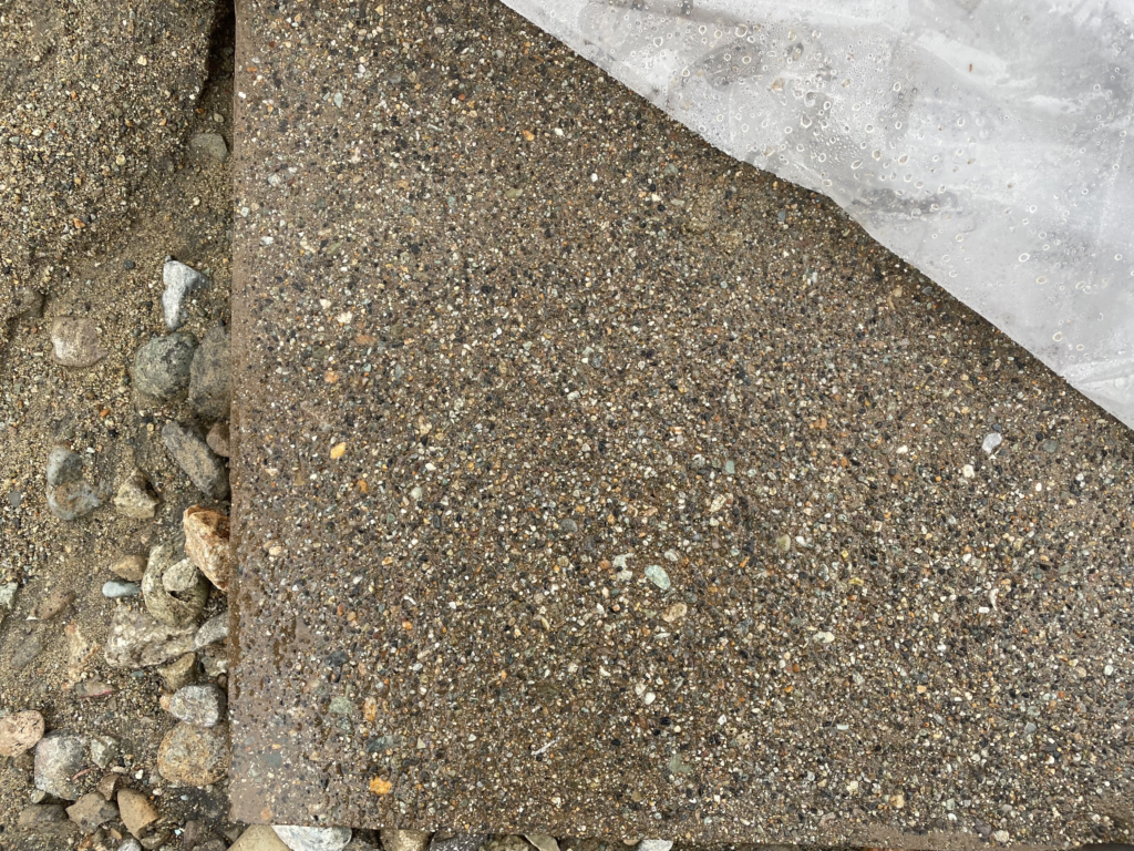 この砂利は彩りが豊かで、洗い出したときの表情が周りの構造物や景観にマッチしそうです。