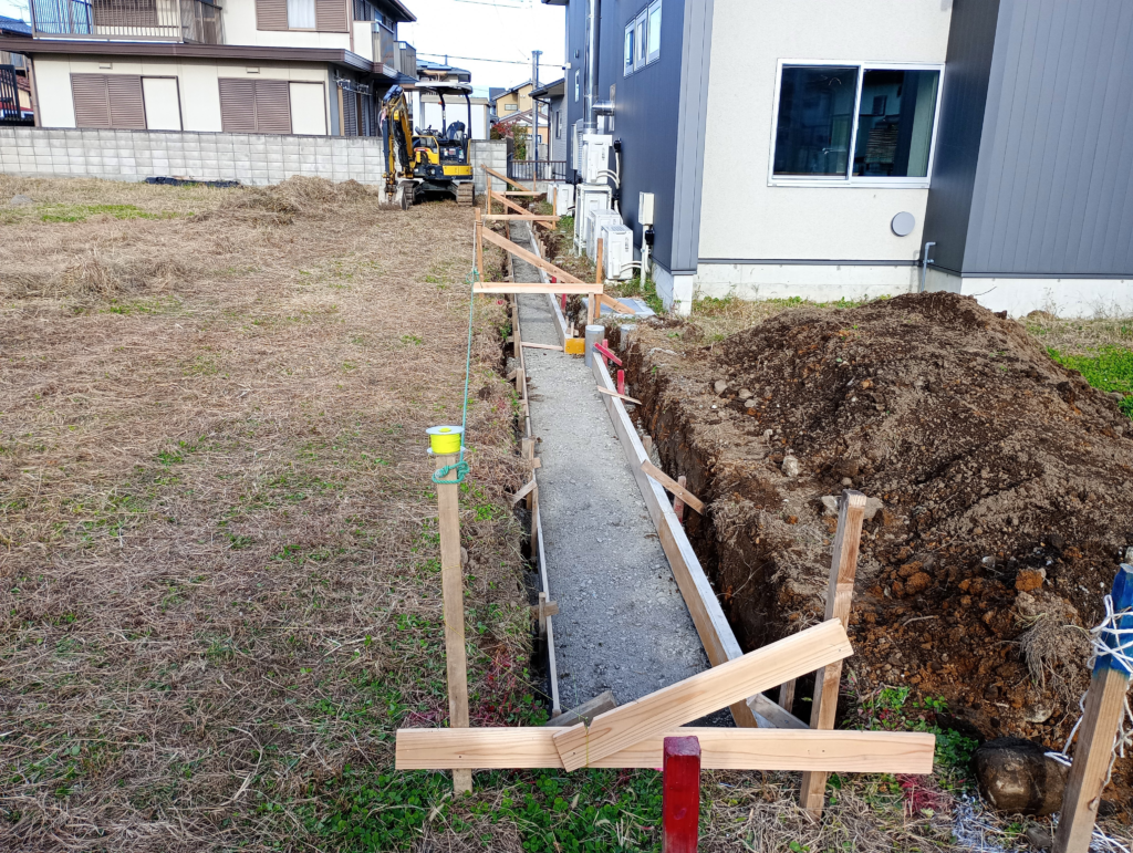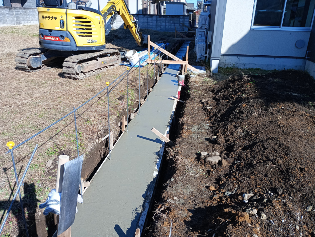 壁の匠からの依頼で、住宅のブロック塀の基礎工事を行いました。普段は当社が依頼する側ですが、人手が足りないとのことで、今回は珍しくこちらが壁の匠の下請けに回りました。 鉄筋を組み、ベースコンクリートを打設しました。この後、ブロック積みは壁の匠が行います。 カテゴリー: 最新情報