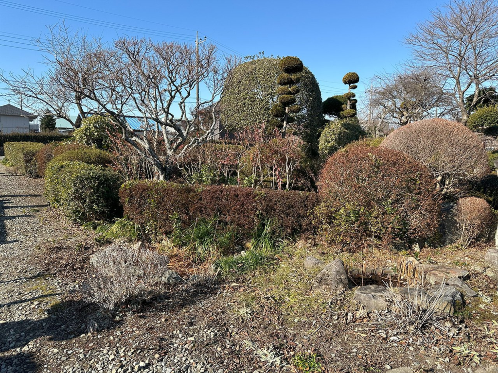 対象地内ほぼ全ての植栽を伐採、抜根し、不足土100m3弱を盛土しました。