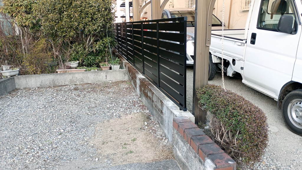 フェンスは適度に隙間があり、風通しを確保しつつ視線が逸れるようなデザインです。