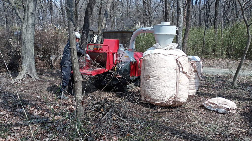伐採後の枝葉処理に困られたお客様からのご依頼でウッドチップ処理を行いました。