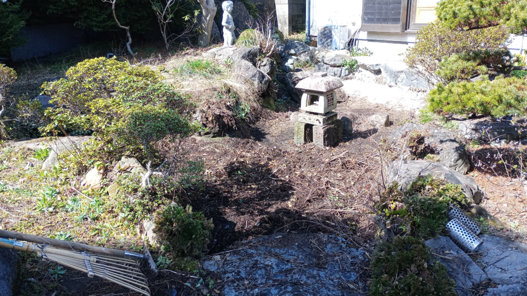 那須塩原市内の住宅で、庭の一角にある取り壊す予定だった古池を花壇として再利用したいとの依頼を受けました。
