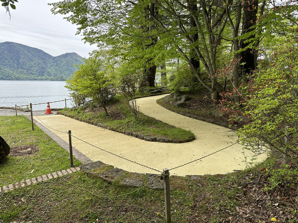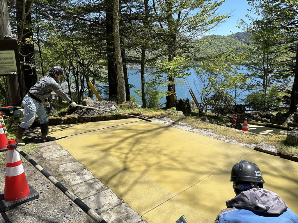 日光市の中禅寺湖沿いにある公園でタフコートを施工してきました。