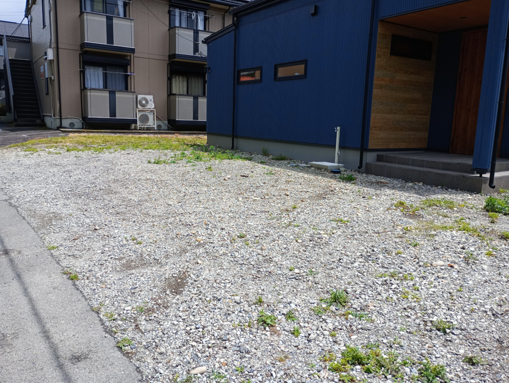 よく見かける砂利が敷いてあるだけのものですが、面積が広いので、雑草の手入れに手間がかかります。
