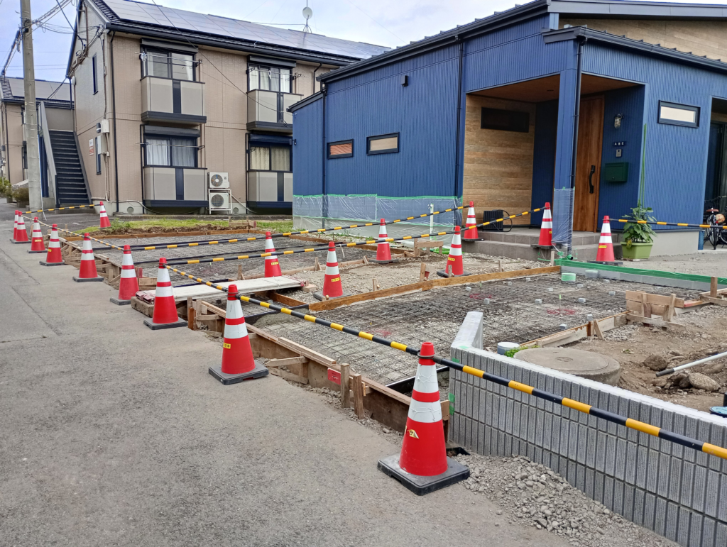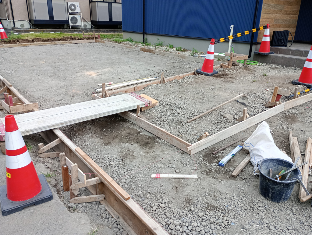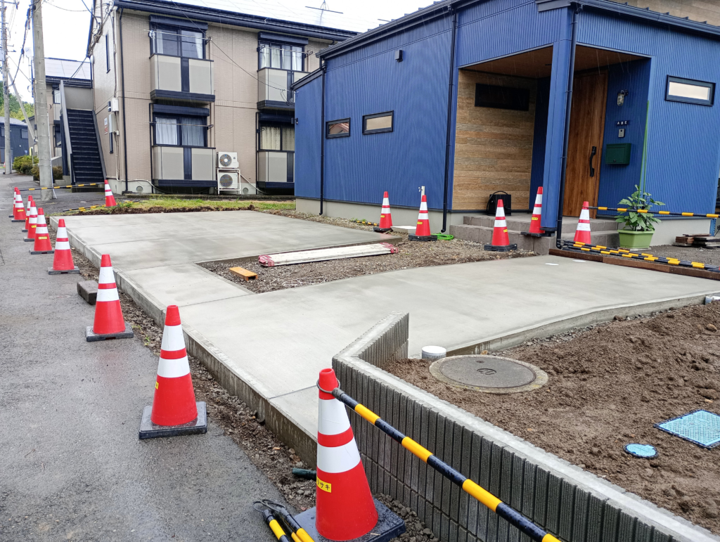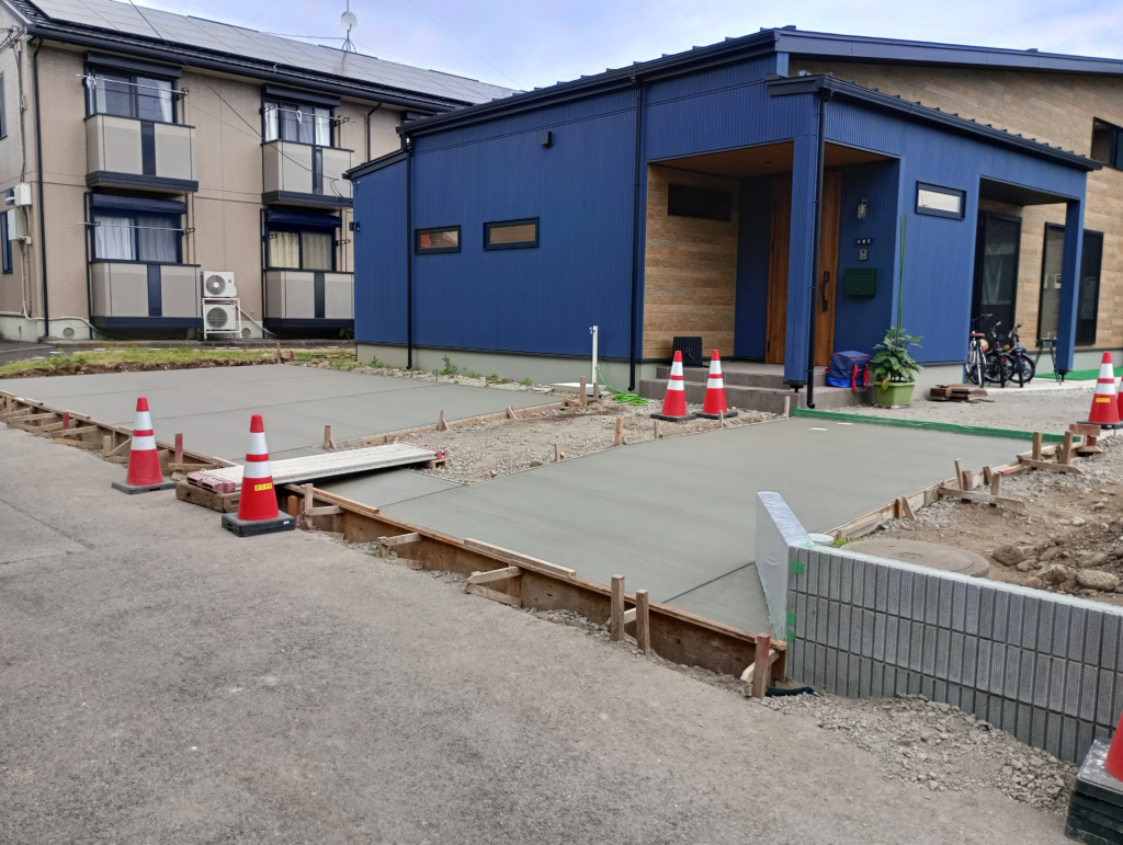 那須塩原市内の新築住宅で、ブロック積みに引き続き、駐車スペースのコンクリート舗装を行いました。