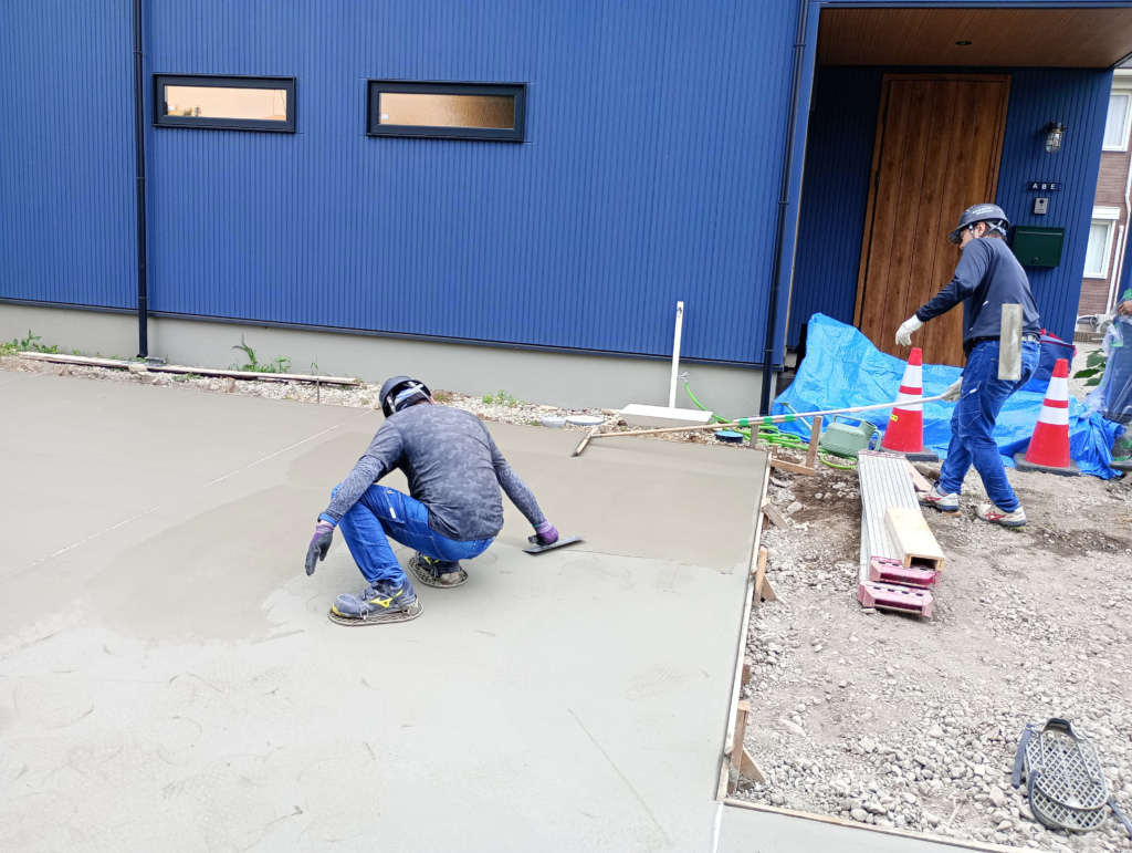 彼らに任せておけば、このくらいの土間コンクリートなどあっという間です。