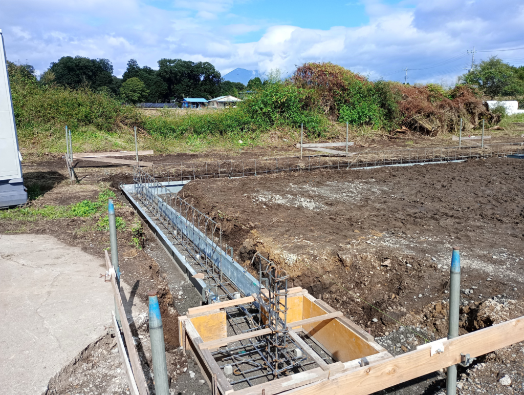 写真は、鉄筋が組み終わってベースコンクリートの打設準備が整ったところです。