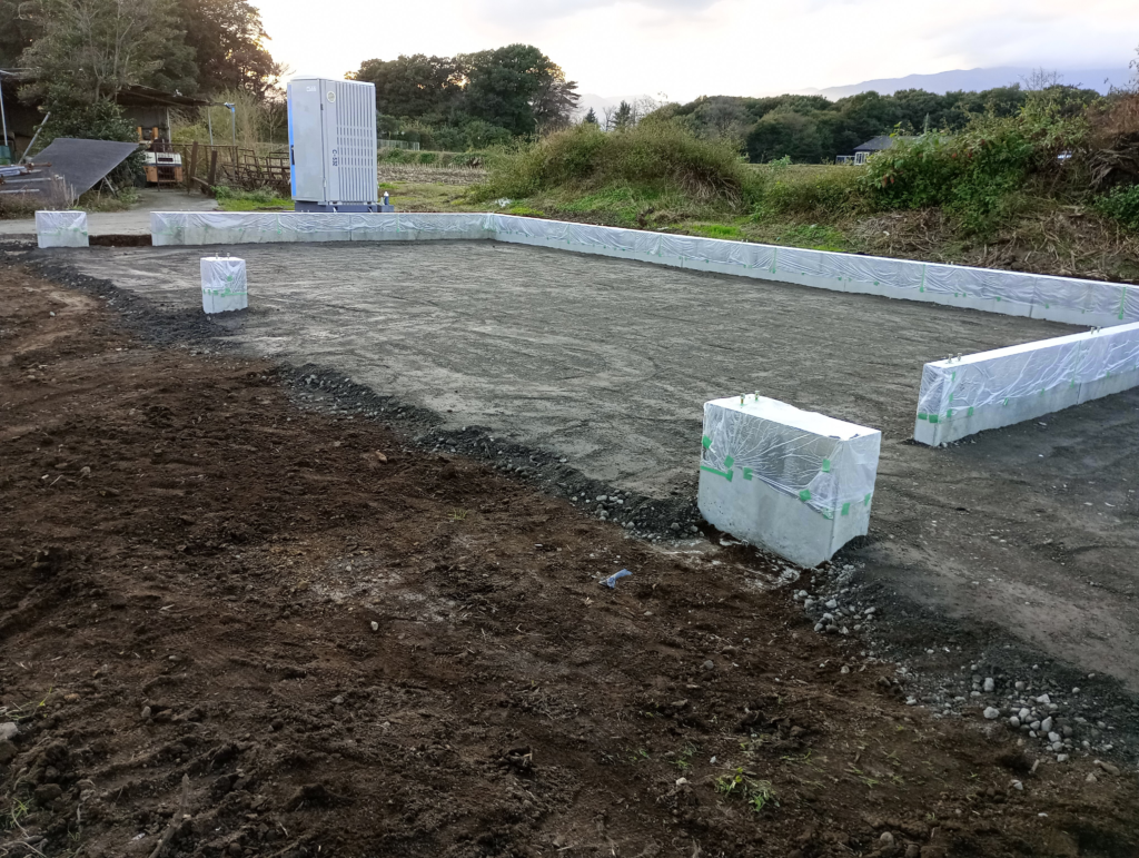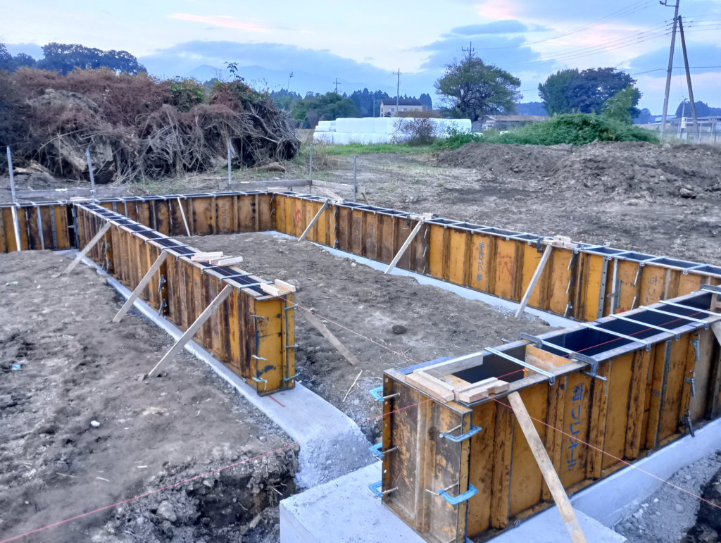 立ち上がりコンクリート打設・養生後、型枠脱型して完成です。