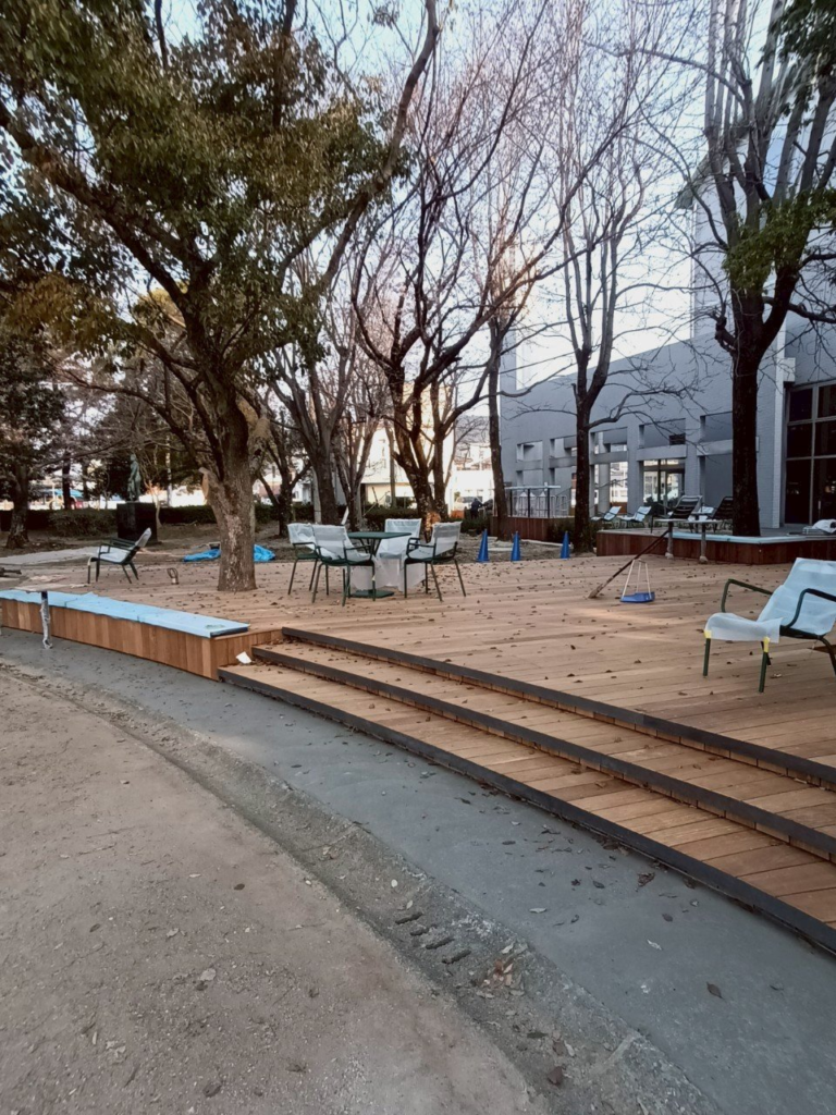 公園の一角に新設される約240m2のデッキテラスの基礎となります。