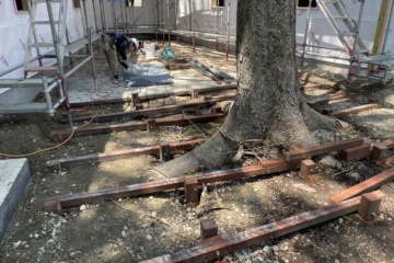 ケヤキを取り囲むウッドデッキを作るため、樹木の周りは井桁基礎工法で施工させていただきました。もち 続きを読む