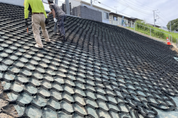 30度くらいの勾配の法面保護にテラセルが採用されました。のり勾配によりますが、豪雨に伴う浸食防止 続きを読む