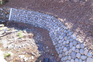 連結自然石のタイロック工法です。 9個の玉石を金具で相互に連結し、4トンのブロック製作、設置しま 続きを読む