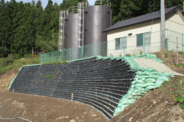 のり面にテラセルを固定し、ハニカム状のセル内に充てん材を入れて安定させることで、のり面の浸食を防 続きを読む