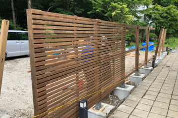 イペのウッドフェンスを施工しています。工場であらかじめ製作したルーバーのパネルを支柱に取り付けま 続きを読む