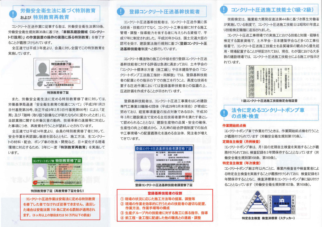 ※当社のオペレーターは、全員が労働安全衛生法に基づく特別教育を受けた有資格者であり、栃木県コンクリート圧送工業組合を通して毎年講習会を受講しています。
